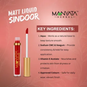 Whether you’re dressing up for daily wear or a special occasion, Manyata Herbal Matt Liquid Sindoor completes your look with grace, tradition, and style.