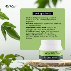 Trusted by skincare enthusiasts across India, Manyata Herbal De-Tan Cream combines the power of proven skin-brightening actives with the gentleness of botanical extracts to deliver visible results without irritating even sensitive skin. Whether you spend long hours outdoors, commute daily through pollution, or simply want to restore your skin’s natural radiance — this cream is your all-in-one solution.